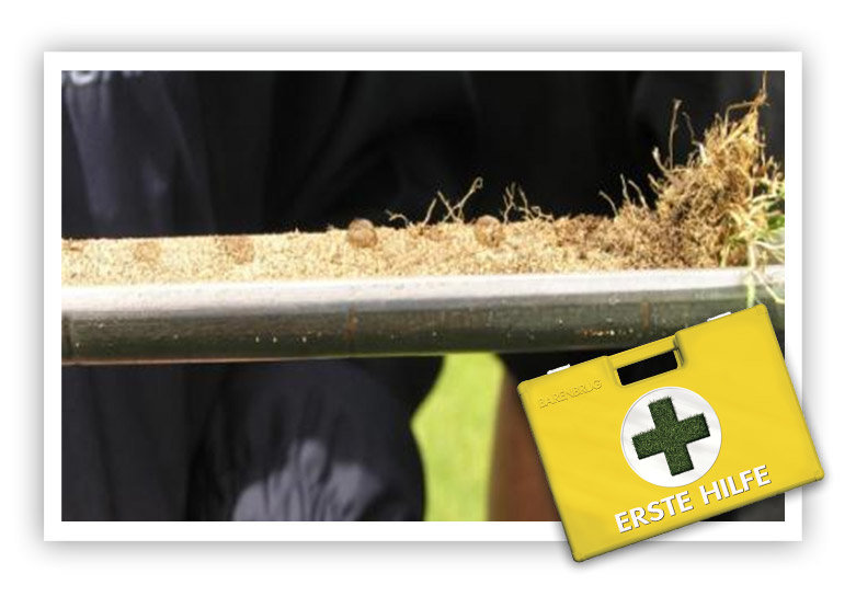 C. Dauert es länger als 1 Minute, bevor der Wassertropfen in den Boden einzieht, ist dieser zu wasserabweisend für eine herkömmliche Regeneration des Rasens. Eine Nachsaat mit gewöhnlichem Grassamen hat keine Wirkung.