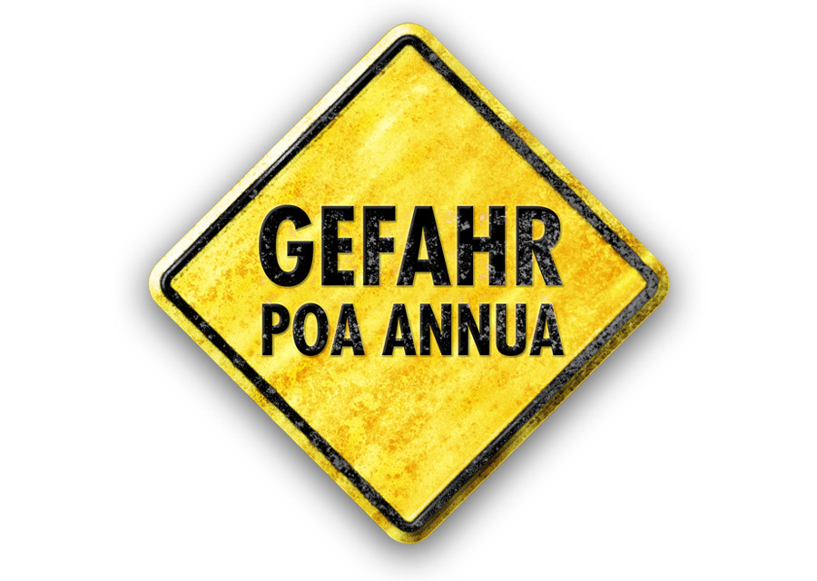 Einjähriges Rispengras - der Albtraum für jeden Greenkeeper und Spielfeld-Manager. Das Einjährige Rispengras (Poa annua) ist eines der häufigsten Grassorten. Es ist ein einjähriges, manchmal zweijähriges und gelegentlich mehrjähriges Rispengras (Poa) mit flachen Wurzeln. Die Einjährige Rispe blüht in einem frühen Stadium und sie wird nicht höher als 25-30 cm. In der Regel bleibt sie jedoch viel niedriger.